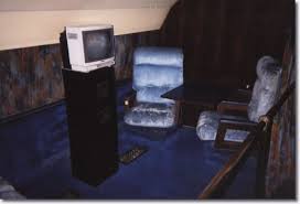 Tem um telefone capaz de ligar para qualquer parte do mundo , um potente sistema de som entre outros.A parte principal era a versão aero transportada do quarto de Elvis em Graceland.